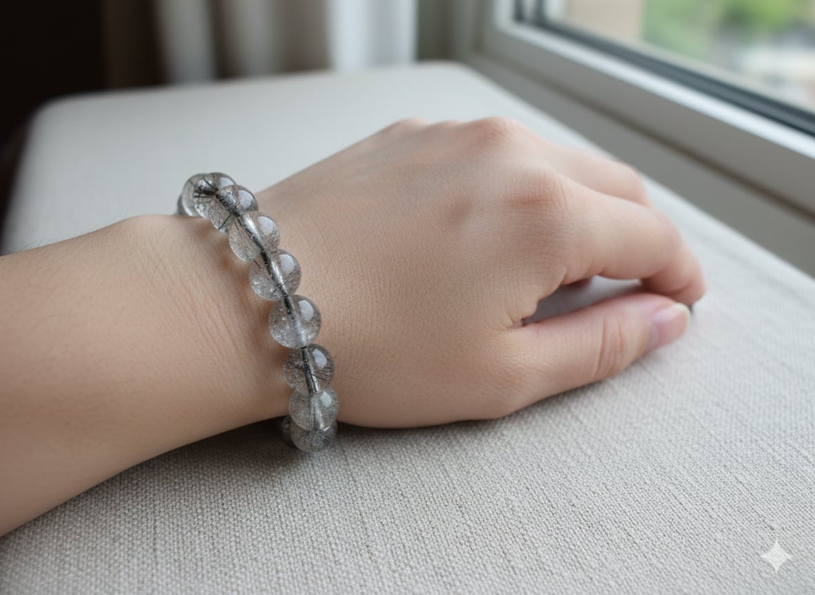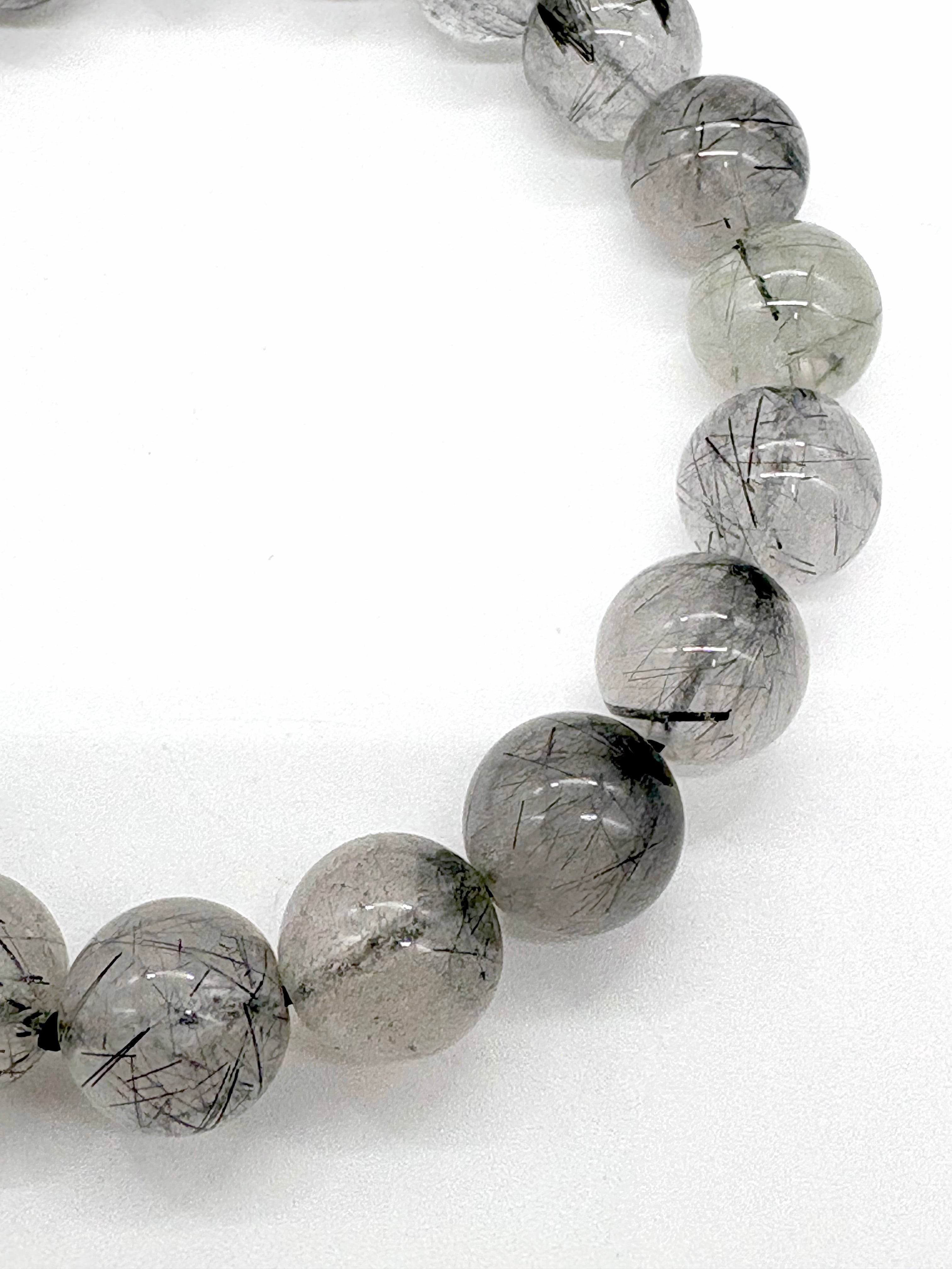 こちらの「ブラックルチルクォーツブレスレット」は、神秘的なブラックルチルを使用したエレガントなブレスレットです。このアイテムは、「集中力の向上」「自己防衛」「勝負運の強化」「財運の安定」のパワーがあります。日常生活において、あなたの心を強化し、自己成長を促進するお手伝いをします。
